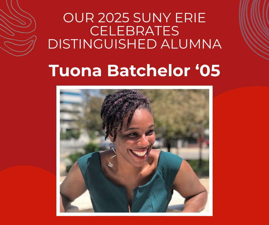 Tuona also served as part of the Community Focus Group for the transformation of LaSalle Park into Ralph C. Wilson Jr. Centennial Park, helping guide its renovation with equity and accessibility in mind. She has been recognized as a Buffalo Business First 40 Under 40 honoree and a Black Achievers Award recipient. Her work is a reflection of her family’s legacy—following in the footsteps of her mother, Tonnalee Batchelor, aunt, Dr. Virginia Batchelor, and grandmother, historian Lillion Batchelor—and the strong foundation she received at SUNY Erie.
